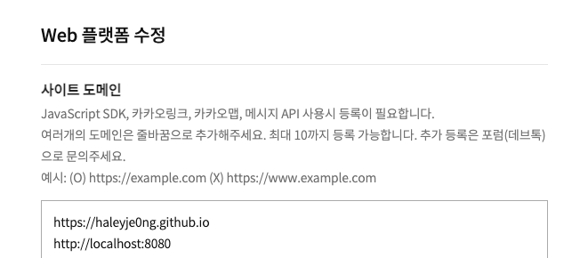 github에서 실제 동작하는 걸 확인하기 위해 도메인을 따로 올려주었다. [ API 사용에 주의해야 할 점! ]