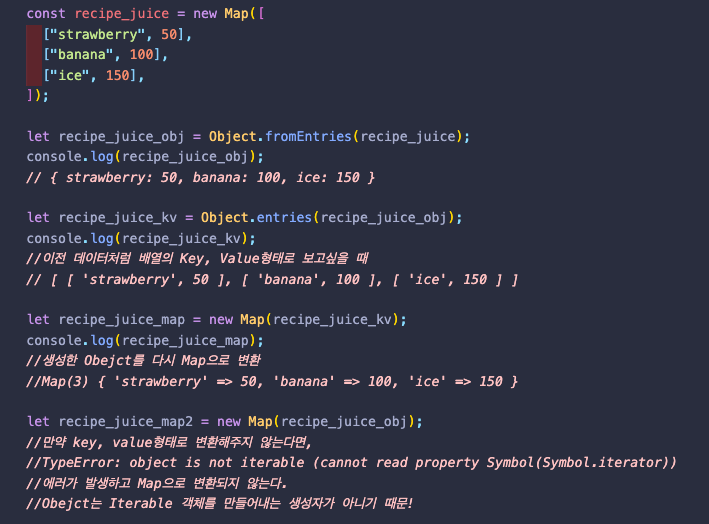 Map을 Obejct로 변환할 때 Object.fromEntries() 함수를 이용해 쉽게 변환할 수 있다.